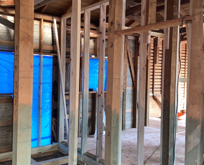 一般的には高度経済成長期の住宅は「早く・安く・簡単に」が求められ、質の悪い住宅が多いのも事実です。しかし内部を全て解体することで傷んだところは修繕し、弱っているところは補強ができます。現行の耐震基準に適合するよう、耐力壁の配置や金物の設置もできます。何より断熱の改修が容易になり、ハウスメーカーの新築最高水準以上の断熱性能が確保できています。これらは全て、今から20年以上も前から暖かく涼しい家の探究を進め、年間200棟以上の全国の設計事務所からの構造計算や外皮計算の依頼を請けるほどの構造や断熱が得意な建築士がいる工務店だからできるのです。